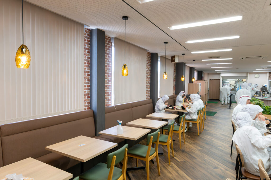 言葉で説明しようとしても伝わりにくいかもしれませんが、この食堂を見てもらえば一目でご理解いただけると思います。実際に採用面談に来られた方の評判も上々で、例年よりも効率的に従業員の採用ができています。