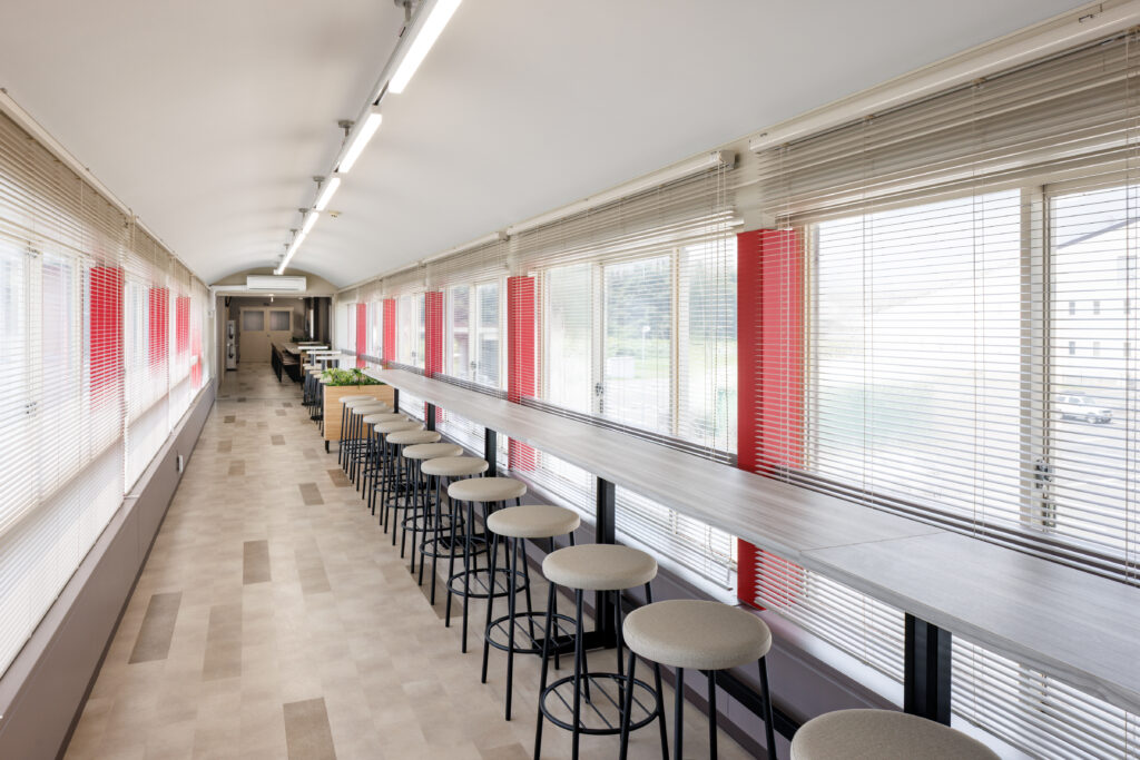 ”こんな感じで仕上がりますよ”というイメージはパースを見ていたので持っていたつもりでしたが、そのイメージを超えるステキな食堂や休憩スペースが出来上がり、皆で興奮しました。