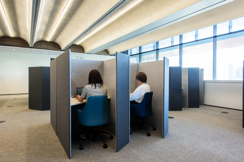 静かに作業できる個室だけでなく、周りからの視線が気にならない半個室や窓際の席など、さまざまな形の集中スペースを導入する企業が増えてきています。
