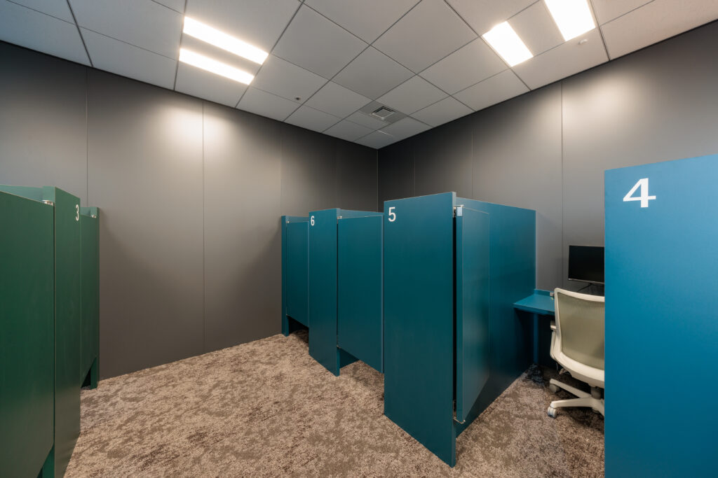 集中スペースとしては半個室を設置し、周囲の視線や音を程よく遮りつつ、開放感も保てる環境になっています。