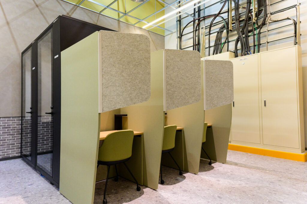 紺井:予約制のテレキューブの他に、1人席の「ソロブース」が3席あります。正直、ご提案いただいた時は「1人席なんて、使われるかな?」と思っていましたが、実際に稼働し始めるとこの席で作業をしている従業員が結構いて、驚いています。やはり、メリハリは必要ですね。