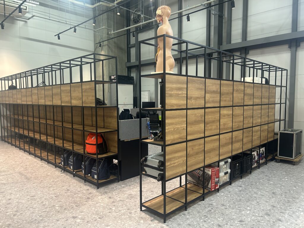 岡留:集中できるスペースと言えば、プログラミングのチーム用に個室的な空間を設けてもらいました。作業の特性上、周りから区切る必要があったのですが、壁を建ててしまうと、人員が増えた時に壊して作り直さないといけない。そこでボックス型の棚を組み合わせるプランを提案していただきました。