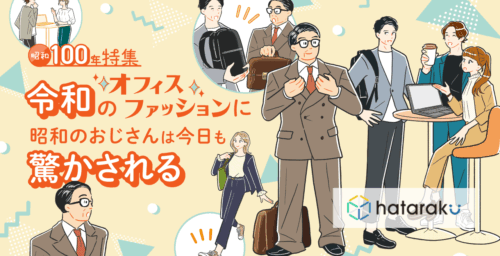 hatarakuでは「昭和100年特集」と題し、昭和と令和のオフィス環境や働き方の変化について、昭和からタイムスリップしてきた“おじさん会社員”の視点でお届けします。