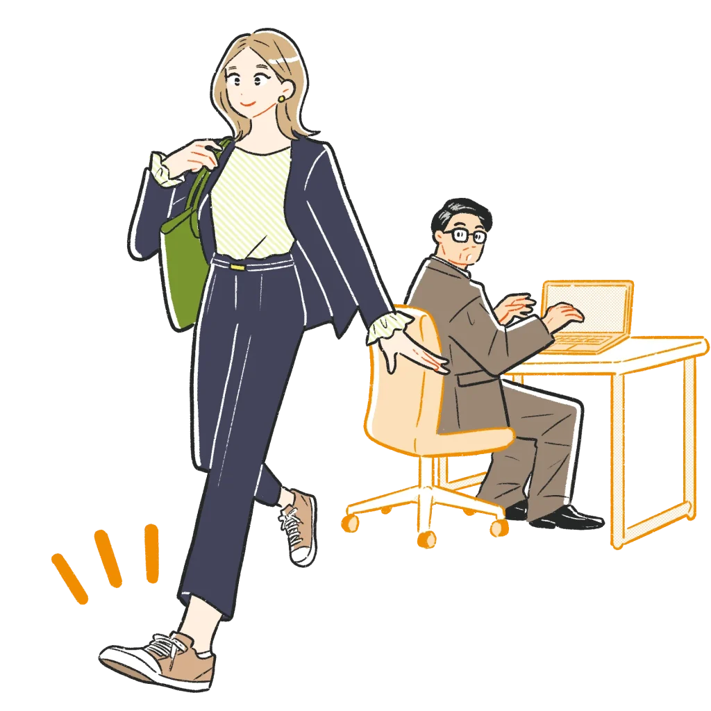 「靴ですか?今日は午後から外回りなので、スニーカーにしています。足が疲れちゃうんで。」