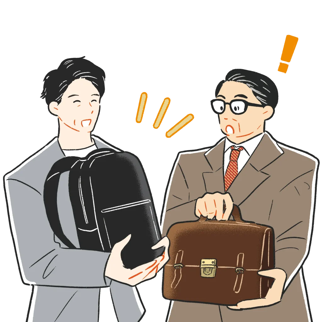 リュック…!?昭和の感覚では、リュックは学生か登山者のもの。オフィスに持ち込むなど考えたこともなかった。だが、彼のリュックはスマートで、きれいに整理整頓されており、何より大切に使われている印象を受けた。